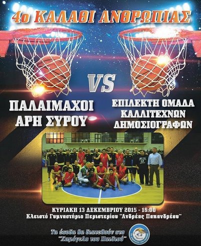 Ο 4ος φιλανθρωπικός αγώνας που διοργανώνουν οι Παλαίμαχοι Άρη Σύρου και οι δημοσιογράφοι της Σύρου (Κυριακή 13/12, ώρα 18:00) έτυχε θεαματικής ανταπόκρισης, καθώς δεκάδες είναι οι καλλιτέχνες/δημοσιογράφοι που θα δώσουν το παρών!