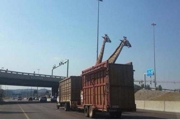 Για την ακρίβεια δύο καμηλοπαρδάλεις μεταφέρονταν στην καρότσα ενός φορτηγού όταν συνέβη το δυστύχημα.