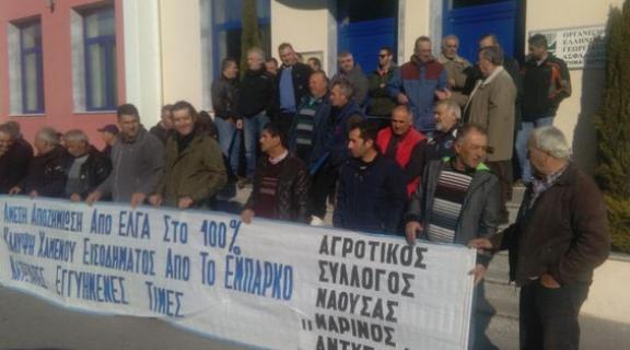 Μαχητική αγωνιστική κινητοποίηση και συμβολική κατάληψη των γραφείων του ΕΛΓΑ στη Βέροια, πραγματοποίησαν το πρωί της Παρασκευής, οι φρουτοπαραγωγοί της Ημαθίας και της Πέλλας μετά από κάλεσμα των Αγροτικών Συλλόγων Νάουσας «Μαρίνος Αντύπας», Γεωργών Βέροιας και Πέλλας «Η Ενότητα», που συντονίζονται με την Πανελλαδική Επιτροπή των Μπλόκων.
