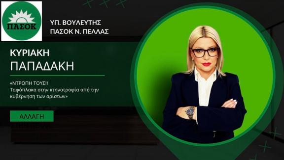 ΚΙΚΗ ΠΑΠΑΔΑΚΗ ΥΠΟΨ.ΒΟΥΛΕΥΤΗΣ ΠΑΣΟΚ ΠΕΛΛΑΣ : "ΤΑΦΟΠΛΑΚΑ ΣΤΗΝ ΚΤΗΝΟΤΡΟΦΙΑ ΑΠΟ ΤΗΝ ΚΥΒΕΡΝΗΣΗ ΤΩΝ ΑΡΙΣΤΩΝ"