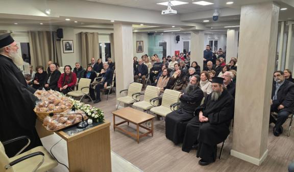 Το Σάββατο 17 Ιανουαρίου 2026 στην αίθουσα του Πνευματικού Κέντρου «Όσιος Παΐσιος ο Αγιορείτης» του Ιερού Ναού Αγίου Γεωργίου Γιαννιτσών πραγματοποιήθηκε η κοπή της Βασιλόπιτας για την αρχή του νέου έτους. Στην εκδήλωση συμμετείχαν όλοι οι εθελοντές και οι εθελόντριες που διακονούν την ενορία στα ιερά αναλόγια, στα εκκλησιαστικά συμβούλια του Ναού και του Φιλοπτώχου Ταμείου, στο Γεύμα Αγάπης, στις δεξιώσεις, στο Κοινωνικό Φροντιστήριο (εκπαιδευτικοί), στις κατηχητικές συνάξεις, στο διαδικτυακό ραδιόφωνο «Εκ Βαθέων», στο περιοδικό «Εκ Βαθέων» καθώς και οι διδάσκοντες στις διάφορες καλλιτεχνικές δράσεις του Πνευματικού Κέντρου.