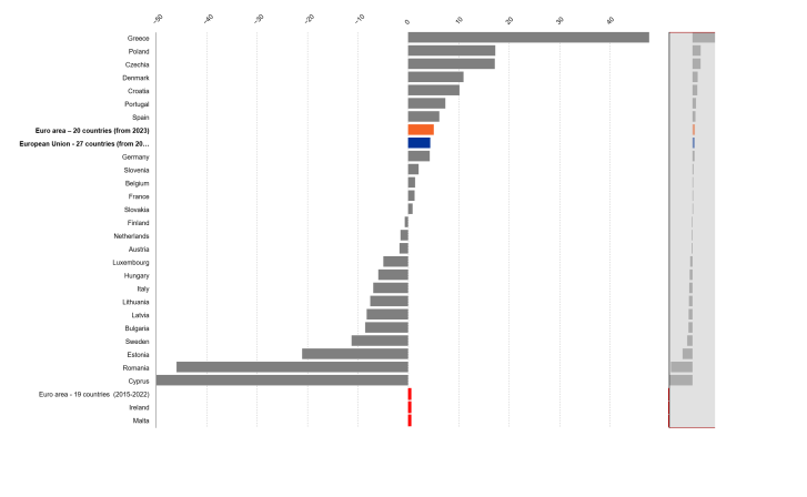 Στην Ελλάδα οι ενάρξεις αυξήθηκαν κατά 6,8% σε τριμηνιαία βάση και κατά 53,7% από το 2021. Σε επίπεδο τριμήνου, οι μεγαλύτερες μειώσεις στις νέες ενάρξεις εταιρειών καταγράφονται στην Κύπρο (κατά 6,7%), την Αυστρία (κατά 6,6%) και τη Φινλανδία (κατά 3,6%).