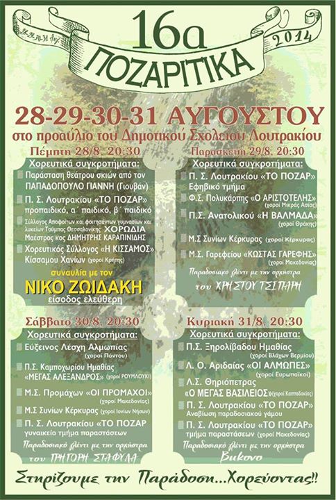 Τα 16α ΠΟΖΑΡΙΤΙΚΑ έρχονται το 4ήμερο 28-31 Αυγούστου στο προαύλιο του Δημοτικού Σχολείου Λουτρακίου.