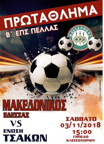 Την Ένωση Τσάκων υποδέχεται ο Μακεδονικός Έδεσσας το Σάββατο σε έναν