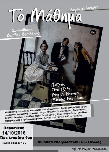 «ΤΟ ΜΑΘΗΜΑ» ΤΟΥ ΙΟΝΕΣΚΟ ΣΤΗΝ ΈΔΕΣΣΑ ΜΕ ΤΗΝ ΥΠΟΣΤΗΡΙΞΗ ΤΟΥ ΕΔΕΣΣΑΪΚΟΥ ΘΕΑΤΡΟΥ