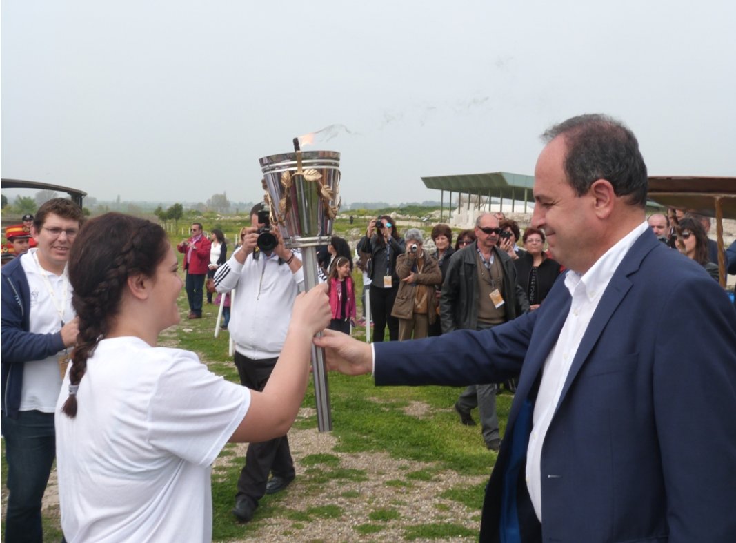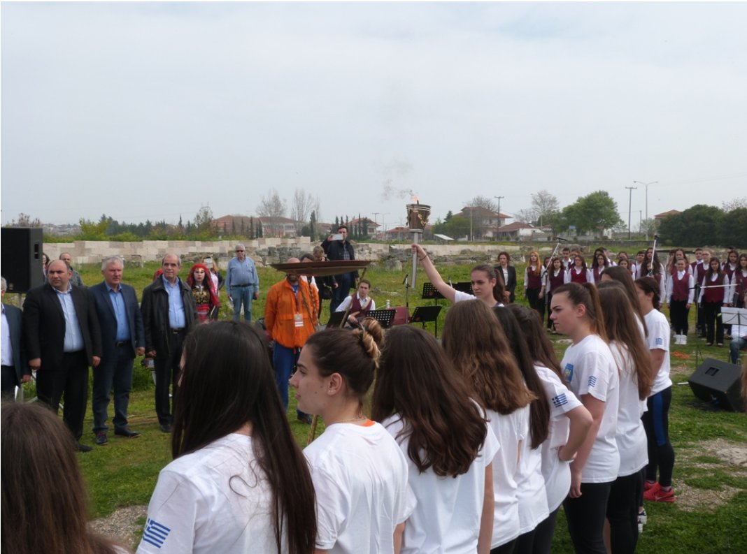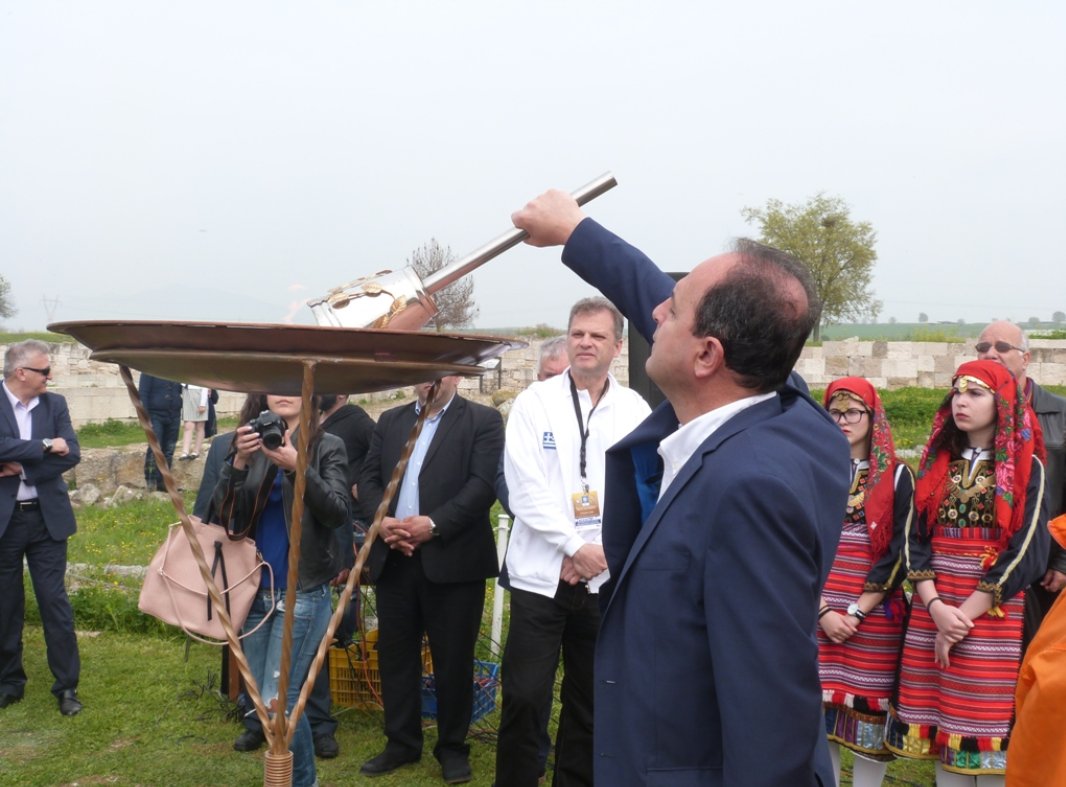 Η εκδήλωση που διοργάνωσε ο Δήμος Πέλλας σε συνεργασία με την Εφορία Αρχαιοτήτων Πέλλας και την οργανωτική επιτροπή του Διεθνούς Μαραθωνίου, άρχισε με το άναμμα του βωμού από την ομάδα χειροσφαίρισης του Γυμναστικού αθλητικού συλλόγου ΄΄ Μέγας Αλέξανδρος ΄΄ Γιαννιτσών.