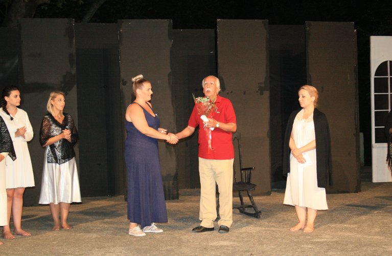 Εκπλήξεις όμως επεφύλαξαν και οι Κορίνθιοι προς το Εδεσσαϊκό Θέατρο. Το ίδιο βράδυ καθήλωσαν το κοινό με τις εξαιρετικές ερμηνείες τους στο έργο του Federico Carcia Lorca «Το σπίτι της Μπερνάντα Άλμπα» και αμέσως μετά την παρουσίαση του έργου, ο σκηνοθέτης της παράστασης και Πρόεδρος του Κορινθιακού Θεάτρου «Βασίλης Ρώτας» κος Παύλος Καράγιωργας, απηύθυνε χαιρετισμό και παρέδωσε το Βραβείο Β΄ γυναικείου ρόλου στην κα Μαίρη Πέτκου, διάκριση που απέσπασε στο 14ο Πανελλήνιο Φεστιβάλ Ερασιτεχνικού Θεάτρου Κορίνθου για την ερμηνεία της ως «Λαρίσα» στο έργο «Φούστα-Μπλούζα» των Μ.Ρέππα-Θ.Παπαθανασίου.