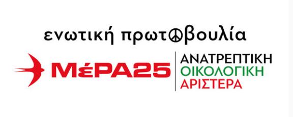 Η ενωτική πρωτοβουλία ΜέΡΑ25 | Ανατρεπτική Οικολογική Αριστερά διοργανώνει κεντρική πολιτική εκδήλωση, τη Δευτέρα, 11 Νοεμβρίου, στις 20:30, στη Θεσσαλονίκη, στον Πολυχώρο WE (3ης Σεπτεμβρίου 3 & Γρ. Λαμπράκη).