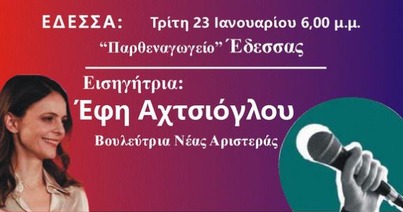 Ανοιχτές συνελεύσεις της Νέας Αριστεράς στα Γιαννιτσά και στην Έδεσσα με την Έφη Αχτσιόγλου