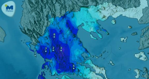 Έως το πρωί της Πέμπτης τα μεγαλύτερα ύψη βροχής είχαν καταγραφεί στο Ιόνιο, στην Κεντρική και Δυτική Μακεδονία, στη Θεσσαλία, στην Ήπειρο, στην Κεντρική και Δυτική Στερεά και στην Πελοπόννησο.