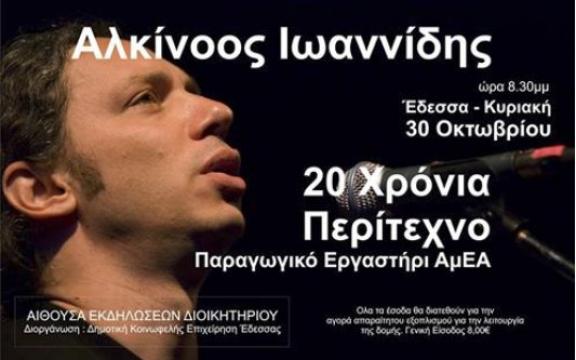 Ο Αλκίνοος Ιωαννίδης ... ένας μεγάλος ερμηνευτής για έναν ευγενή σκοπό θα παρουσιάσει συναυλία στην Έδεσσα στις 30 Οκτωβρίου στις 8.30μμ στην αίθουσα του Διοικητήριου της Π.Ε. Πέλλας.