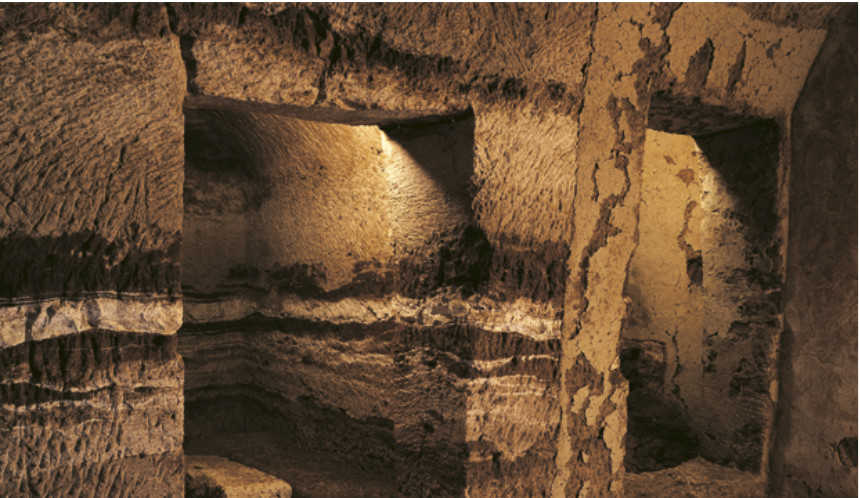 Σε μικρή απόσταση έξω από το ανατολικό τείχος της πόλης, στην περιοχή της εισόδου του σημερινού οικισμού ανασκάφηκε ένα υπόγειο ταφικό συγκρότημα, μήκους 25 μ. λαξευμένο στο φυσικό βράχο της περιοχής.