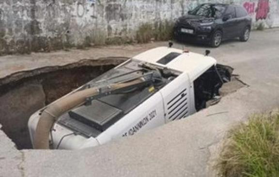 Το περιστατικό συνέβη κατά τη διάρκεια προγραμματισμένων εργασιών, όταν μια σύγχρονη μικρή σκούπα του εργοταξίου βρέθηκε στο κενό, καθώς ο δρόμος άνοιξε στα δύο.