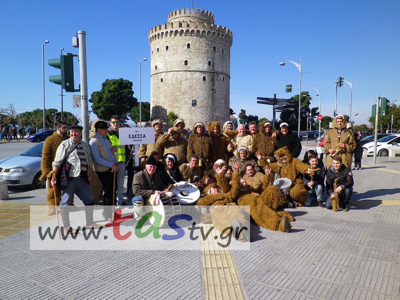 Την πομπή φέτος ξεκίνησαν οι Αρκούδες-Μέτσκες από την Έδεσσα μέσω Λευκού Πύργου όπου με συνοδεία από μακεδονικά χάλκινα, χορούς και πειράγματα Θεσσαλονικείς και επισκέπτες και κυρίως τα παιδιά ήθελαν να βγουν φωτογραφία με μία αρκούδα … ο Στόχος δεν ήταν άλλος από το κουδούνισμα, την φασαρία για να ξυπνήσει η φύση, να πάρει η μέρα μπροστά, να έρθει η άνοιξη. Από την Έδεσσα ήταν οι Αρκούδες … προωθώντας το σημερινό Εδεσσαϊκό Καρναβάλι! Στην Πλατεία Αριστοτέλους κάθε ομάδα παρουσίαζε το δρώμενο της και ο κόσμος είχε την ευκαιρία να ακούσει την μικρή της ιστορία …