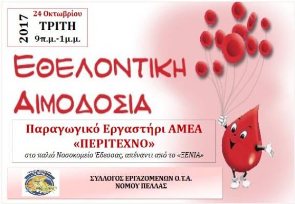 ΟΜΑΔΙΚΗ ΑΙΜΟΔΟΣΙΑ ΣΥΛΛΟΓΟΥ ΕΡΓΑΖΟΜΕΝΩΝ Ο.Τ.Α. Ν. ΠΕΛΛΑΣ ΣΤΗΝ ΕΔΕΣΣΑ
