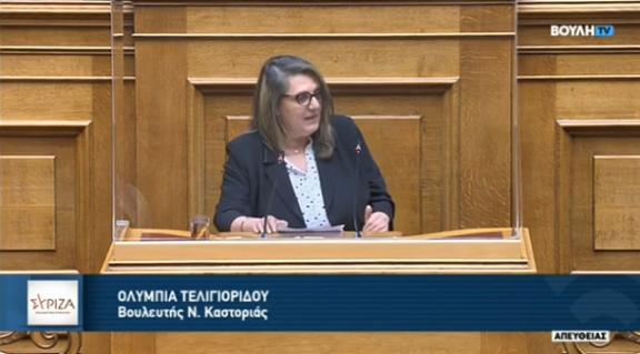 Ομιλία Ολυμπίας Τελιγιορίδου στην Ολομέλεια της Βουλής κατά τη συζήτηση του σ/ν του Υπουργείου Περιβάλλοντος και Ενέργειας «Μετονομασία της Ρυθμιστικής Αρχής Ενέργειας σε Ρυθμιστική Αρχή Αποβλήτων, Ενέργειας και Υδάτων και διεύρυνση του αντικειμένου της με αρμοδιότητες επί των υπηρεσιών ύδατος και της διαχείρισης αστικών αποβλήτων, ενίσχυση της υδατικής πολιτικής- Εκσυγχρονισμός της νομοθεσίας για τη χρήση και παραγωγή ηλεκτρικής ενέργειας από ανανεώσιμες πηγές μέσω της ενσωμάτωσης των οδηγιών ΕΕ2018/2001 και 2019/944 – Ειδικότερες διατάξεις για τις ανανεώσιμες πηγές ενέργειας και την προστασία του περιβάλλοντος».