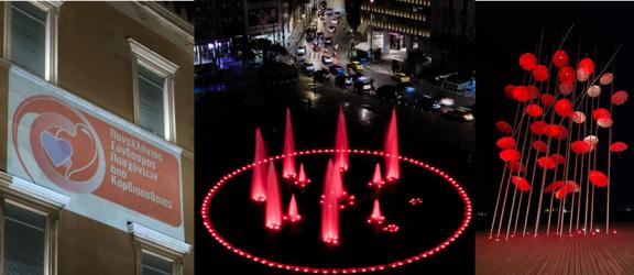 Φωταγώγηση Εμβληματικών Σημείων από τον Πανελλήνιο Σύνδεσμο Πασχόντων από Καρδιοπάθειες.