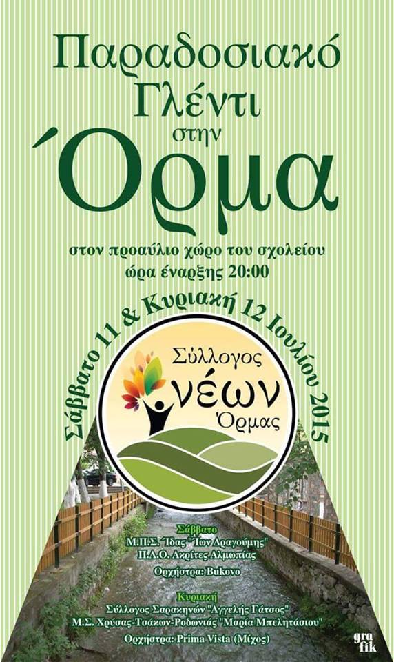 το Σάββατο 11 και την Κυριακή 12 Ιουλίου 2015 ώρα 8 μ.μ. στον προαύλιο χώρο του σχολείου. Στις εκδηλώσεις θα χορέψουν παραδοσιακά συγκροτήματα της περιοχής.
