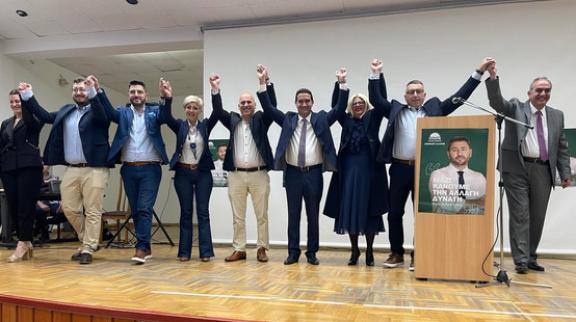 Η εκδήλωση έκλεισε με τους υποψήφιους βουλευτές, Αλεξανδρίδου Ραχήλ, Ζαρογουλίδη Παναγιώτη, Νουσηκύρου Άλκη, Ξυλουργίδη Αντώνη, Παπαδάκη Κική και Τσαλταφερίδη Απόστολο, να ανεβαίνουν μαζί στην σκηνή, σαν μια γροθιά, και με τα χέρια ψηλά να δίνουν το σύνθημα της Νίκης!