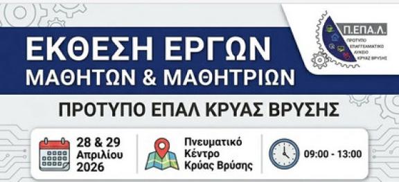 Π.ΕΠΑ.Λ. ΚΡΥΑΣ ΒΡΥΣΗΣ: ΕΚΘΕΣΗ ΕΡΓΩΝ ΜΑΘΗΤΩΝ-ΑΦΙΣΕΣ
