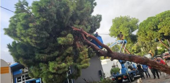 Το δέντρο προκάλεσε υλικές ζημιές σε επιχείρηση και η πτώση του αποδίδεται στις έντονες βροχοπτώσεις – Δείτε βίντεο και φωτογραφίες
