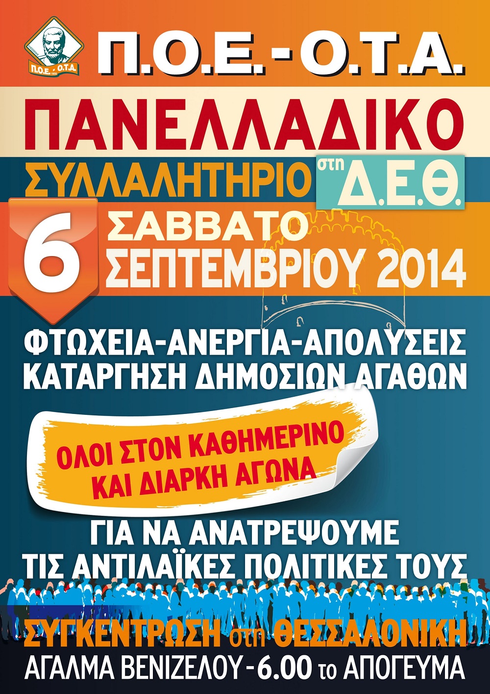 Π.Ο.Ε.-Ο.Τ.Α.:ΤΟ ΣΥΛΛΑΛΗΤΗΡΙΟ ΣΤΗ Δ.Ε.Θ.-ΣΑΒΒΑΤΟ 6 ΣΕΠΤΕΜΒΡΙΟΥ 2014