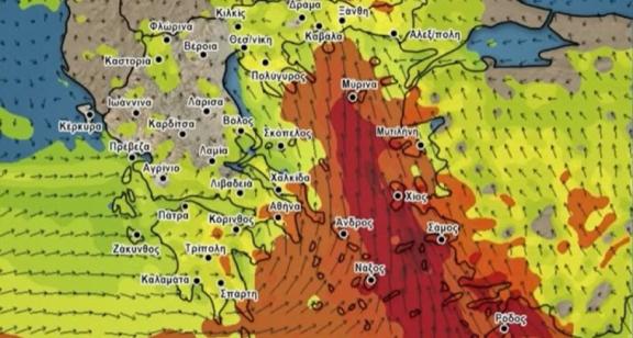 Επιπλέον, θυελλώδεις νότιοι άνεμοι θα πνέουν σήμερα Κυριακή (25-01-2026) στο Ιόνιο και αύριο Δευτέρα (26-01-2026) στο Αιγαίο.