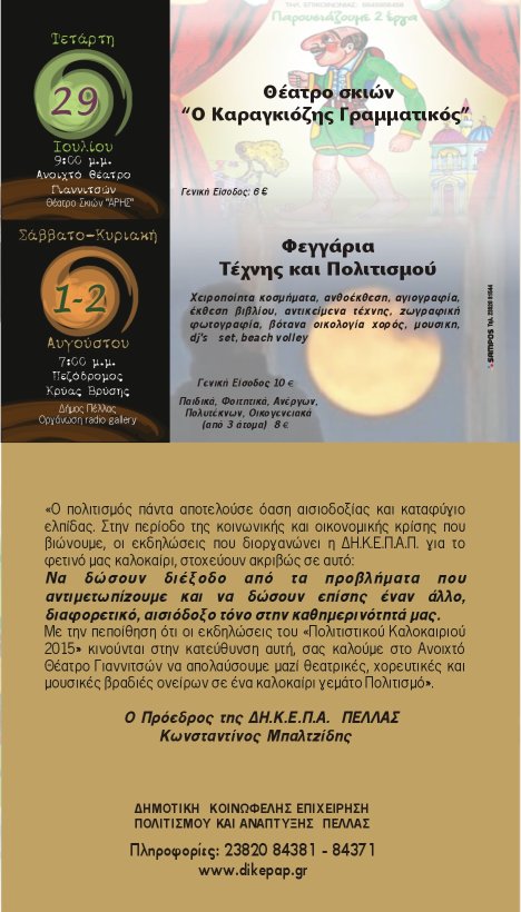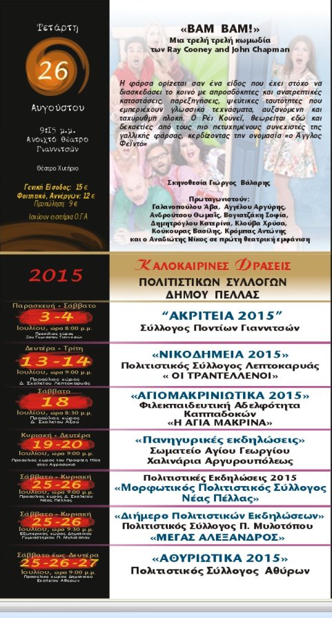 ΠΟΛΙΤΙΣΤΙΚΟ ΚΑΛΟΚΑΙΡΙ ΣΤΑ ΓΙΑΝΝΙΤΣΑ ΜΗΝΟΣ ΙΟΥΛΙΟΥ 2015