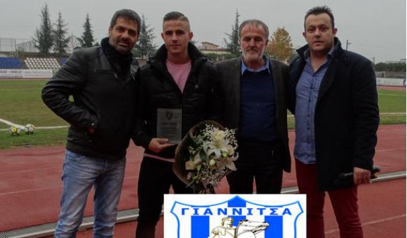 Λίγο πριν την έναρξη του αγώνα Α.Σ. Γιαννιτσα- Αγροτικός Αστέρας πραγματοποιήθηκε η απονομή τιμητικής πλακέτας από την ομάδα των Γιαννιτσών στον συμπολίτη ποδοσφαιριστή της εθνικής και αρχηγό του ΠΑΟΚ Δημήτρη Πέλκα.