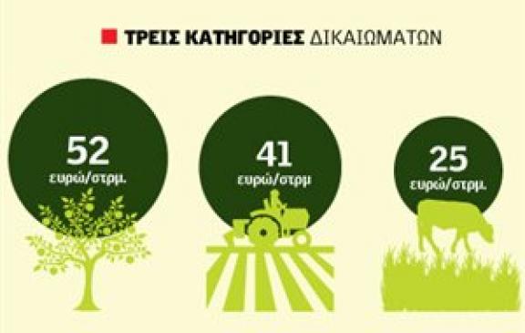 Τα δικαιώματα φαίνεται να διαμορφώνονται στα 25 ευρώ/στρέμμα για βοσκοτόπια, στα 41 για αροτραίες, στα 52 για δενδρώδεις.