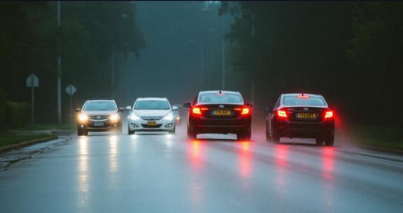 • Μείνετε μέσα και ανάψτε τα προειδοποιητικά φώτα στάσης (φώτα έκτακτης ανάγκης) μέχρι να κοπάσει η καταιγίδα.