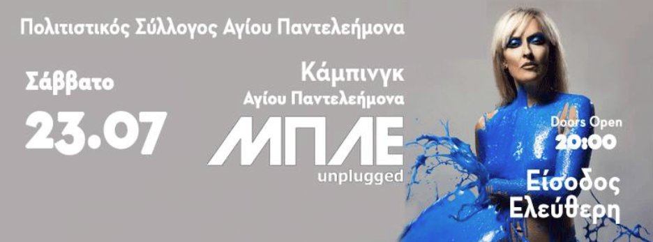 Οι ΜΠΛΕ έρχονται στο Camping Αγίου Παντελεήμονα, για μία και μοναδική Συναυλία, το Σάββατο 23 Ιουλίου, φυσικά, με ΕΛΕΥΘΕΡΗ ΕΙΣΟΔΟ, στα πλαίσια των Πολιτιστικών Εκδηλώσεων, που διαρκούν από τις 22, μέχρι και τις 27 Ιουλίου 2016, στον Άγιο Παντελεήμονα Φλωρίνης!