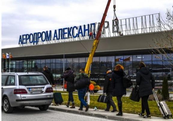 Σε εξέλιξη βρίσκονται από το πρωί εργασίες αφαίρεσης της μεταλλικής κατασκευής στην οροφή του αεροδρομίου των Σκοπίων, στην οποία αυτό αναγράφεται με την προηγούμενη ονομασία του, «Μέγας Αλέξανδρος».