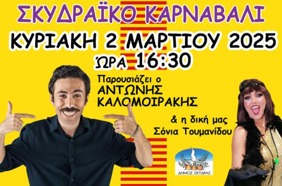 ΣΚΥΔΡΑΙΚΟ ΚΑΡΝΑΒΑΛΙ : ΚΥΡΙΑΚΗ 2 ΜΑΡΤΙΟΥ 2025 Η ΜΕΓΑΛΗ ΚΑΡΝΑΒΑΛΙΚΗ ΠΑΡΕΛΑΣΗ Τρίτη, 25 Φεβρουαρίου, 2025 - 13:50 Κατηγορία: Εκδηλώσεις