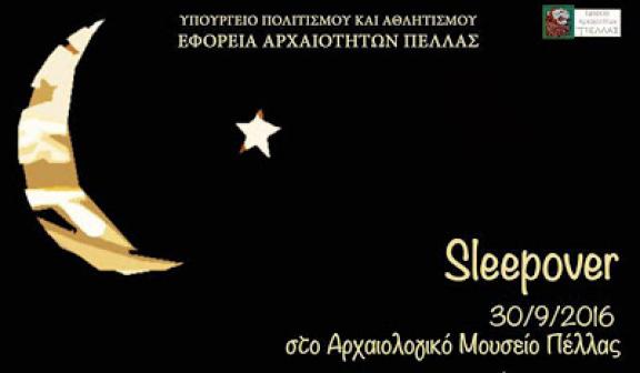Το Sleepover θα πραγματοποιηθεί την Παρασκευή 30-9-2016 από τις 20:00 μέχρι τις 8:00 του Σαββάτου 1-10-2016, προσφέροντας τη δυνατότητα στα παιδιά της Περιφερειακής Ενότητας Πέλλας και όχι μόνο, να γνωρίσουν από κοντά το Μουσείο, να πάρουν μέρος σε επιλεγμένα προγράμματα και δραστηριότητες, βιώνοντας μια ξεχωριστή εμπειρία.