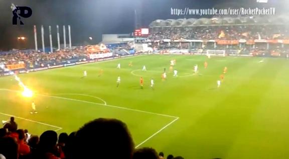 Το καπνογόνο του 25χρονου οπαδού καρφώθηκε στο λαιμό του Ρώσου γκολκίπερ και από τύχη δεν υπήρξε σοβαρότερος τραυματισμός.