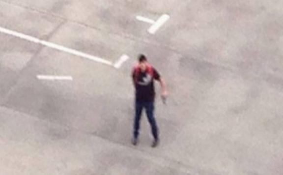Στο σημείο αυτό σταματά η εικόνα, ακούγονται οι σφαίρες, άνθρωποι να ουρλιάζουν πανικόβλητοι και οι σειρήνες των περιπολικών. Το κινητό στρέφεται ξανά στο πάρκινγκ, ο ένοπλος είναι πάλι εκεί και πυροβολεί ξανά γύρω- γύρω. Μετά σταματά η λήψη.