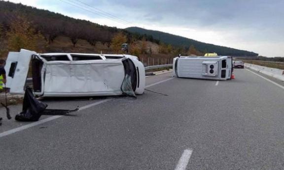 Περίπου στις 11:00, δύο ΙΧ αυτοκίνητα τύπου βαν εξετράπησαν της πορείας τους από άγνωστη, μέχρι στιγμής, αιτία, έπεσαν στα προστατευτικά κιγκλιδώματα και ανατράπηκαν.