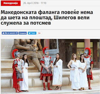 «Ο δήμαρχος της πόλης των Σκοπίων, Πέτρε Σιλέγκοφ, δήλωσε ότι καταργεί την ‘τουριστική φρουρά’ στο κέντρο των Σκοπίων, επειδή αποτελεί θέμα γελοιοποίησης της πόλης.