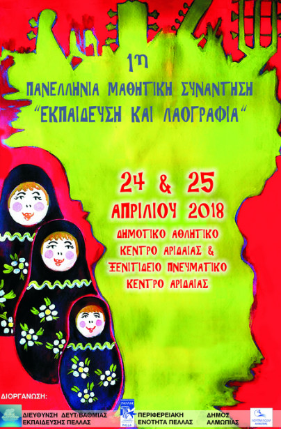 Η Διεύθυνση Δευτεροβάθμιας Εκπαίδευσης Πέλλας, η Περιφερειακή Ενότητα Πέλλας, ο Δήμος Αλμωπίας και τα Λουτρά Πόζαρ, συνδιοργανώνουν στις 24 και 25 Απριλίου 2018, στην Αριδαία, διημερίδα με θέμα: «Εκπαίδευση και Λαογραφία», με συμμετοχή σχολικών μονάδων από διάφορες περιοχές της χώρας.