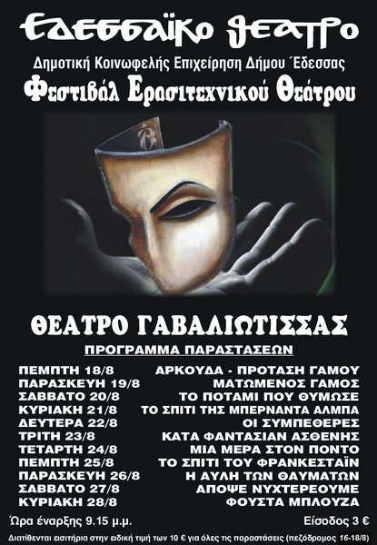 ΣΤΗΝ ΕΔΕΣΣΑ ΑΠΌ 18 ΕΩΣ 28 ΑΥΓΟΥΣΤΟΥ/ΦΕΣΤΙΒΑΛ ΕΡΑΣΙΤΕΧΝΙΚΟΥ ΘΕΑΤΡΟΥ»