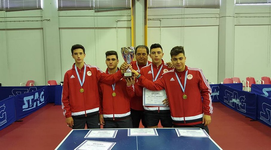 Ο αθλητής του Ομίλου Επιτραπέζιας Αντισφαίρισης Έδεσσας (ΟΕΑ Έδεσσας) παραχωρήθηκε με υποσχετική στην ομάδα του Ολυμπιακού Σ.Φ.Π και μαζί με τους Γιάννη Σγουρόπουλο, Γιώργο Σταματούρο και Κωνσταντίνο Αλμπανάκη και προπονητή τους τον Γιώργο Χριστοφοράκη, κατέκτησαν τον τίτλο στο ομαδικό των εφήβων που ήταν ο 5ος συνολικά στην ιστορία του ΟΣΦΠ και ο 1ος μετά το μακρινό 1982. Στον τελικό συναντήθηκαν τα δύο πρώτα φαβορί: Ο Ολυμπιακός και η Πρόοδος Ραφήνας (με αθλητές τους Νίκο Αντωνιάδη, Δημήτρη Κορδούτη και Μιχάλη Χατζάκη) η οποία ήταν κάτοχος του τίτλου τις δύο τελευταίες χρονιές. Η εξέλιξη δεν ξέφυγε από τα προγνωστικά (μάλιστα όλα τα επί μέρους ματς έληξαν με σκορ 3-0) και η ομάδα του Πειραιά επιβλήθηκε με τελικό αποτέλεσμα 3-1.