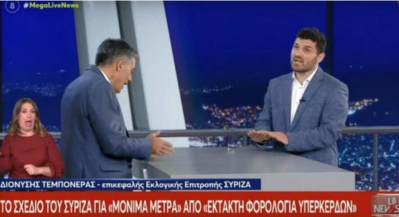 Στο ζήτημα της φορολογίας αναφέρθηκε ο Διονύσης Τεμπονέρας, επικεφαλής της Εκλογικής Επιτροπής του ΣΥΡΙΖΑ, μιλώντας στο MEGA.