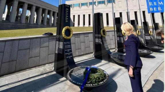 Θεοδώρα Τζάκρη: Κατέθεσε στεφάνι εκ μέρους της Βουλής των Ελλήνων στο Ελληνικό Μνημείο του War Memorial για τους 186 Έλληνες που χάθηκαν στο πόλεμο της Κορέας