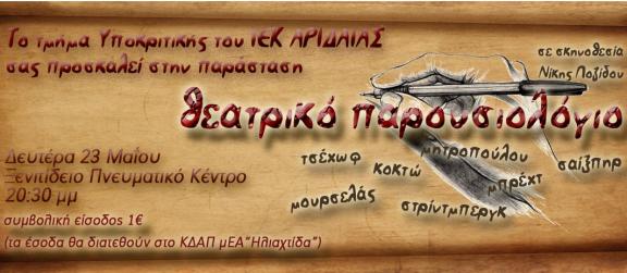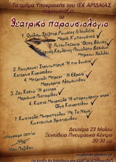 ΘΕΑΤΡΙΚΗ ΠΑΡΑΣΤΑΣΗ ΑΠΟ ΤΟ ΙΕΚ ΑΡΙΔΑΙΑΣ ΤΜΗΜΑ ΥΠΟΚΡΙΤΙΚΗΣ ΤΕΧΝΗΣ