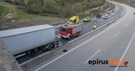 Δύο νεκροί είναι ο απολογισμός διπλού τροχαίου δυστυχήματος που σημειώθηκε λίγο μετά τις 3:20 το μεσημέρι του Σαββάτου στην Εγνατία Οδό στην Ήπειρο και πιο αναλυτικά ένα χιλιόμετρο από τον κόμβο της Δωδώνης.