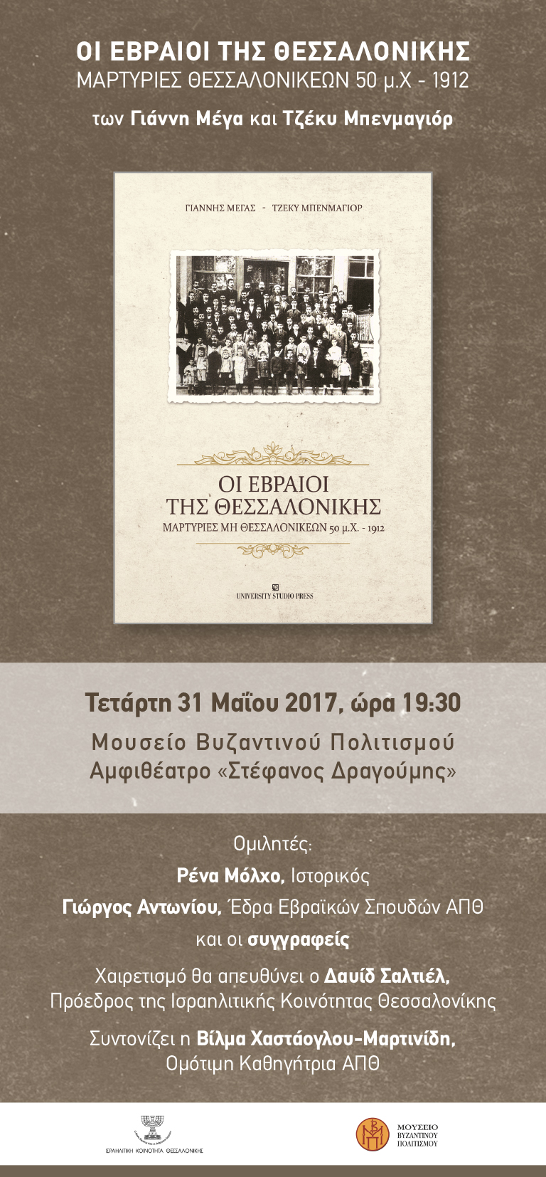 Εκδήλωση βιβλιοπαρουσίασης "Οι Εβραίοι της Θεσ/νίκης 31-5-2017