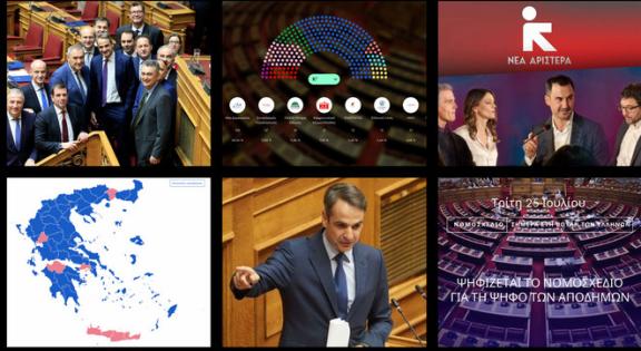 Παρά το γεγονός ότι το 2023 παράχθηκε πλούσιο νομοθετικό έργο, η κοινοβουλευτική αποτίμηση του έτους που εκπνέει δεν εστιάζεται κυρίως σε αυτό. Το κυρίαρχο στοιχείο της χρονιάς αφορά στις νέες πολιτικές ισορροπίες που διαμορφώθηκαν στη Βουλή των Ελλήνων αλλά και στο γεγονός πως το 2023 ήταν η χρονιά με τα … 3 Κοινοβούλια. Οι εκλογές και η κοινοβουλευτική κυριαρχία της Νέας Δημοκρατίας υπό την ηγεσία του Κυριάκου Μητσοτάκη που μέσα στο 2023 κέρδισε και τις δύο εκλογικές αναμετρήσεις που έγιναν, οι ποσοτικές και ποιοτικές αλλαγές στη σύνθεση της Βουλής (8 συνολικά κόμματα), η διάσπαση του ΣΥΡΙΖΑ και η Νέα Αριστερά, η πολυδιάσπαση της αντιπολίτευσης που δυσκολεύει την άσκηση κοινοβουλευτικών προνομίων (πχ. σύσταση εξεταστικής επιτροπής), το νομοθετικό έργο (απόφαση του Πρωθυπουργού να φέρει εκ νέου νομοσχέδιο για την ψήφο των απόδημων, η φορολόγηση των ελευθέρων επαγγελματιών, η συμπαγής κυβερνητική πλειοψηφία (ιδιαίτερη «πρόκληση» για τη συνοχή της αναμένεται να αποτελέσει το νομοσχέδιο για τον γάμο των ομόφυλων ζευγαριών), η αποτύπωση των καταστροφών (το πολύνεκρο δυστύχημα των Τεμπών, οι πυρκαγιές που ταλάνισαν την χώρα και αυτό το καλοκαίρι όπως και η κακοκαιρία Daniel που είχε ως αποτέλεσμα τις πρωτοφανείς πλημμύρες στη Θεσσαλία), το σκάνδαλο των υποκλοπών (εξεταστική επιτροπή και η αμφισβητήσιμη πλειοψηφία της Διάσκεψης των Προέδρων για την αλλαγή της σύνθεσης της διοίκησης των ανεξάρτητων αρχών - ΑΔΑΕ) και το κόμμα «Σπαρτιάτες» (έρευνα του Αρείου Πάγου αναφορικά με τις σχέσεις του με τον Ηλία Κασιδιάρη). |