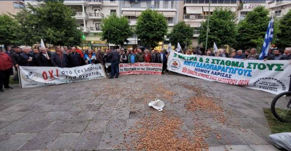 Συλλαλητήριο αγροτών από περιοχές της Περιφερειακής Ενότητας Λάρισας όπως τον Τύρναβο, την Αγιά, τον Αμπελώνα, το Συκούριο, τον Πλατύκαμπο και την Ελασσόνα, πραγματοποιήθηκε στο κέντρο της Λάρισας το απόγευμα της Παρασκευής.