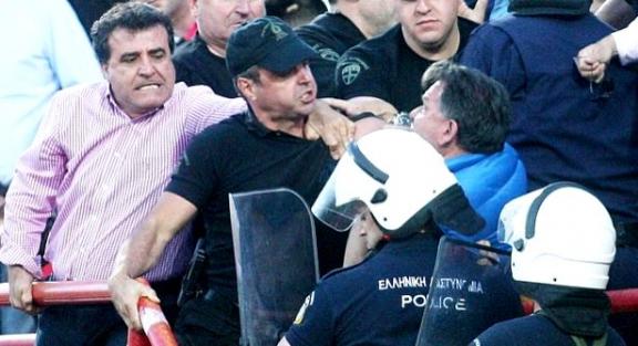 το οποίο οδήγησε σε γενικότερη ένταση στην κερκίδα και ρίψη χημικών από τα ΜΑΤ.